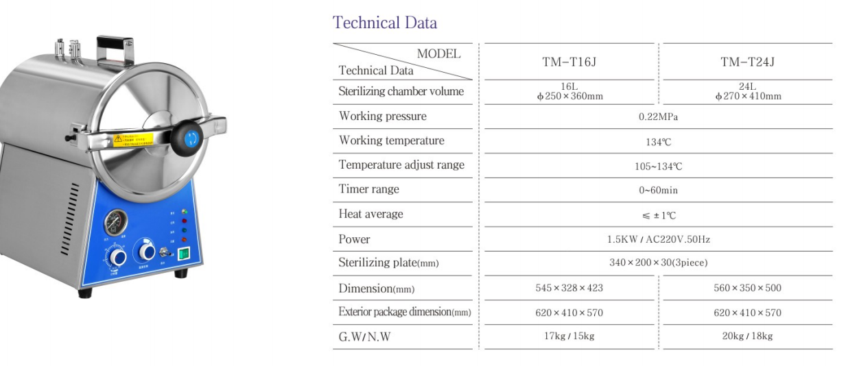 This sterilizer is a safe, reliable and automatically controlled small rapid desktop sterilization equipment, suitable for medical and health, pharmaceutical, scientific research and other units. Provides rapid sterilization of surgical, dental, and ophthalmic instruments, glassware, pharmaceuticals, media and fabric dressings, and foodstuffs that are resistant to saturated steam.