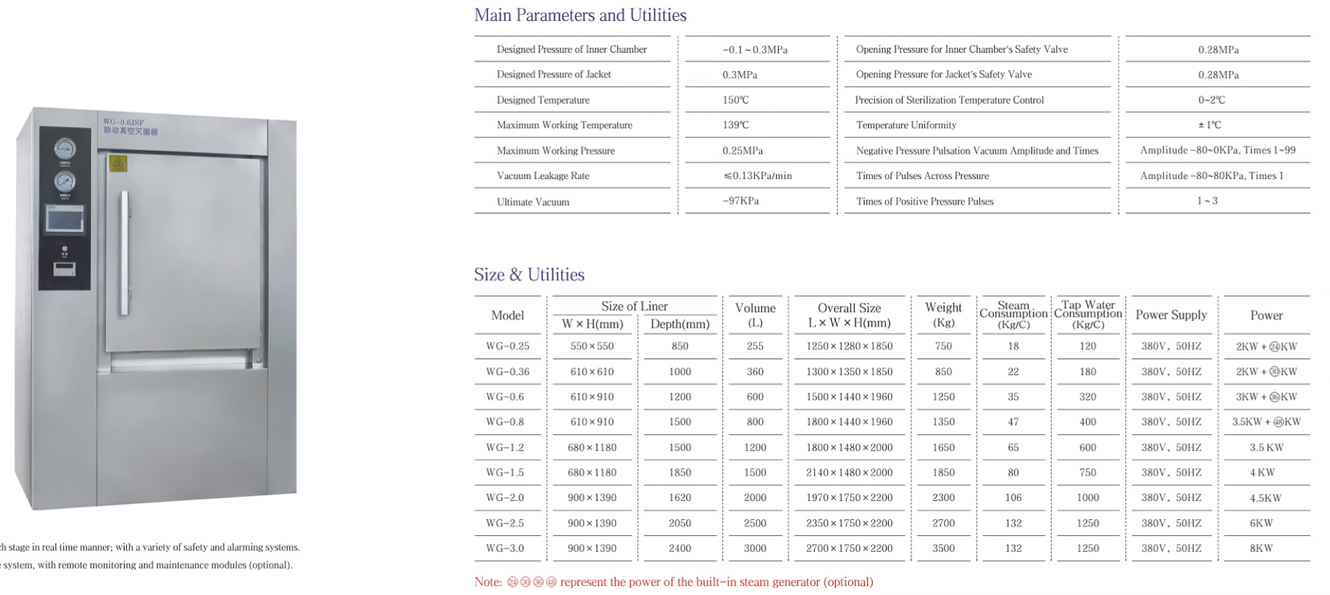 • Safety interlock device; when the door is not closed, the steam can not enter the inner body and overcurrent protection; the power separator will automatically cut off the power supply when the current is overloaded.