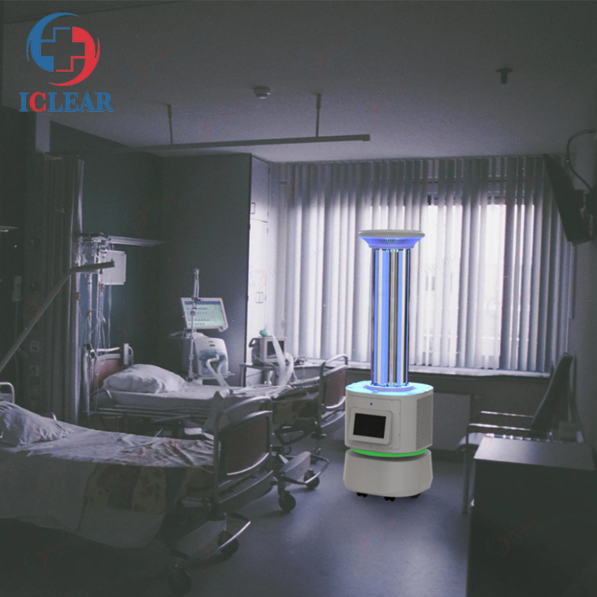 This robot has two working modes: air circulating disinfection (Air Mode) and UV disinfection (Direct Mode).