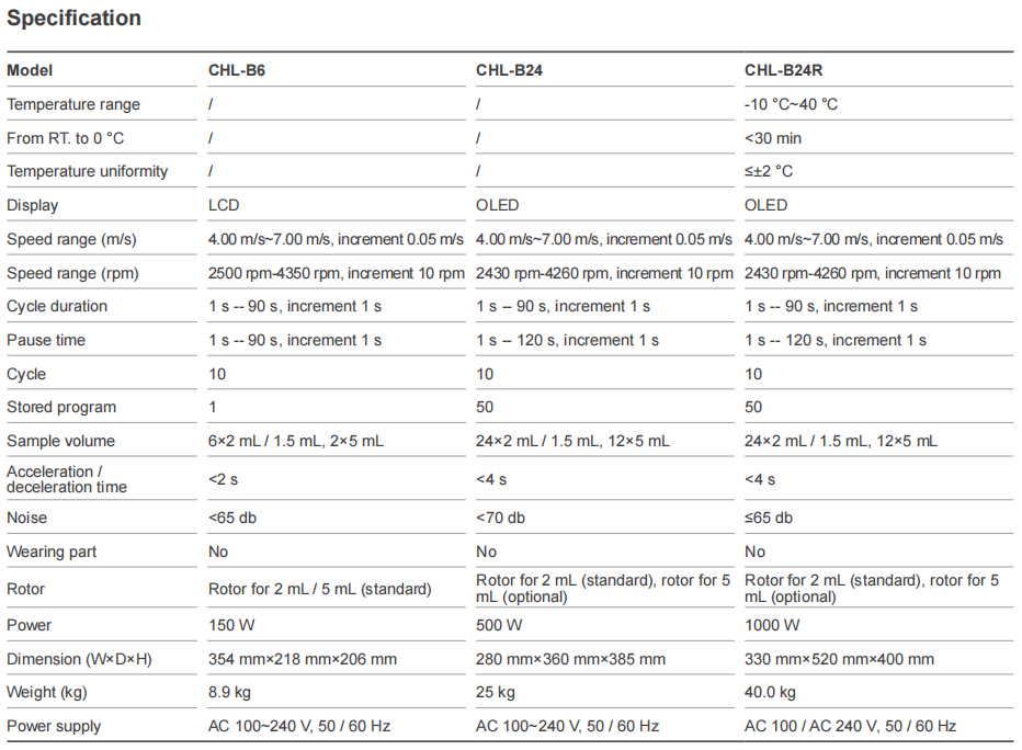 CHL-B6/24/24R series is a fast and efective homogenizer with function of grinding, lysis and homogenizing by three-dimensional vibration and the coordination of the grinding beads (glass beads, silica beads, metal beads etc.). Efective to homogenize the animal or plant tissue, bacteria, fungus and so on. It also has extraordinary power for processing hard lysis samples such as spores, hair, bones, feces, soil etc.